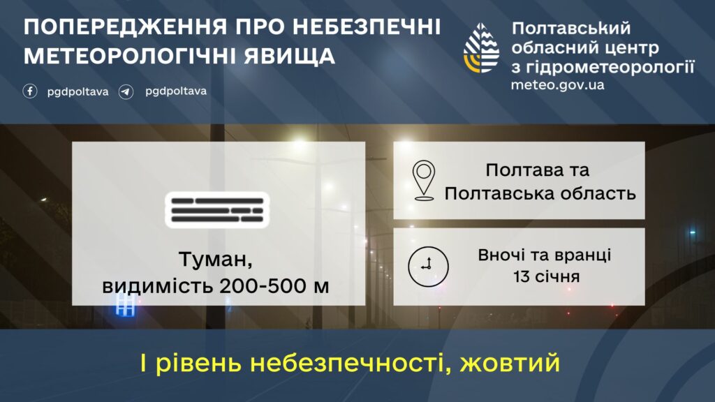 Про це повідомили в Полтавському обласному центрі з гідрометеорології 12 січня.