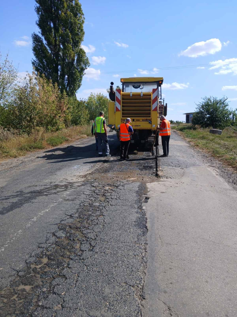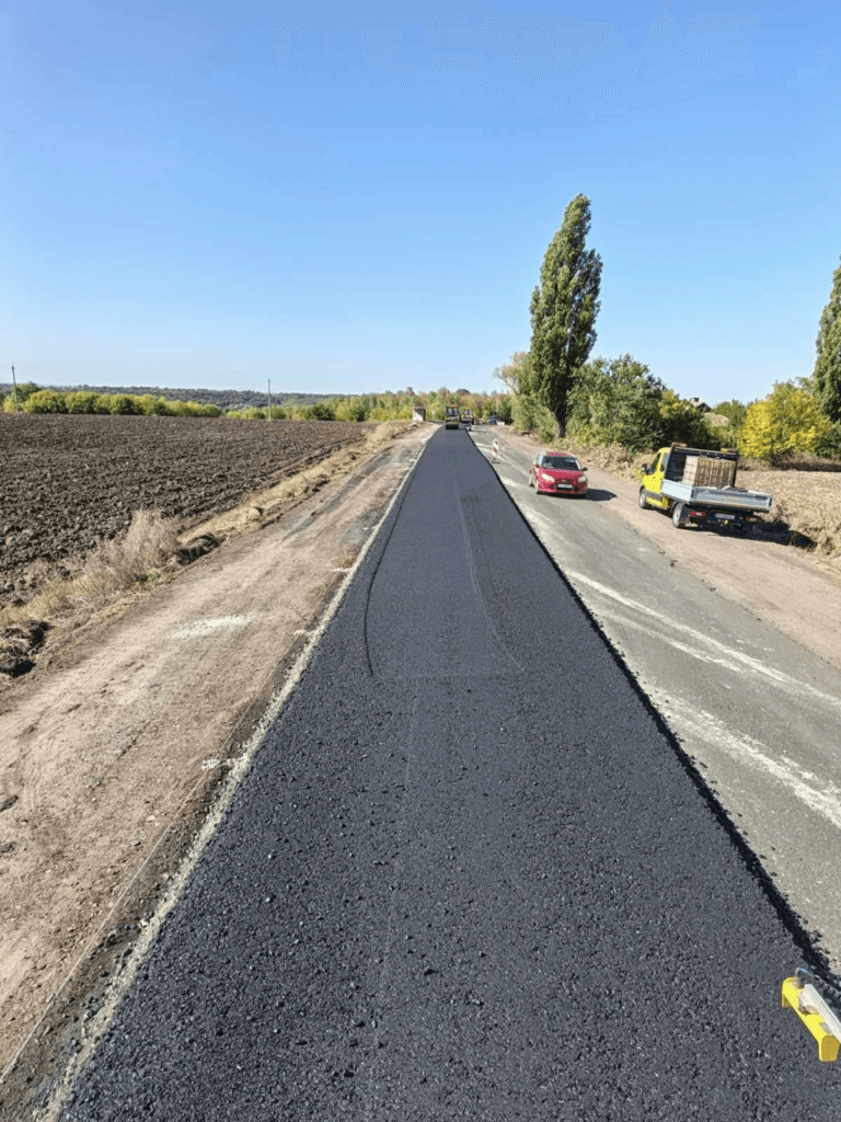 Нині на шляху триває укладання вирівнювального шару асфальтобетону суцільною картою. Роботи виконують по основному проїзду дороги в Котельві, а також облаштовують місця для паркування автомобілів.