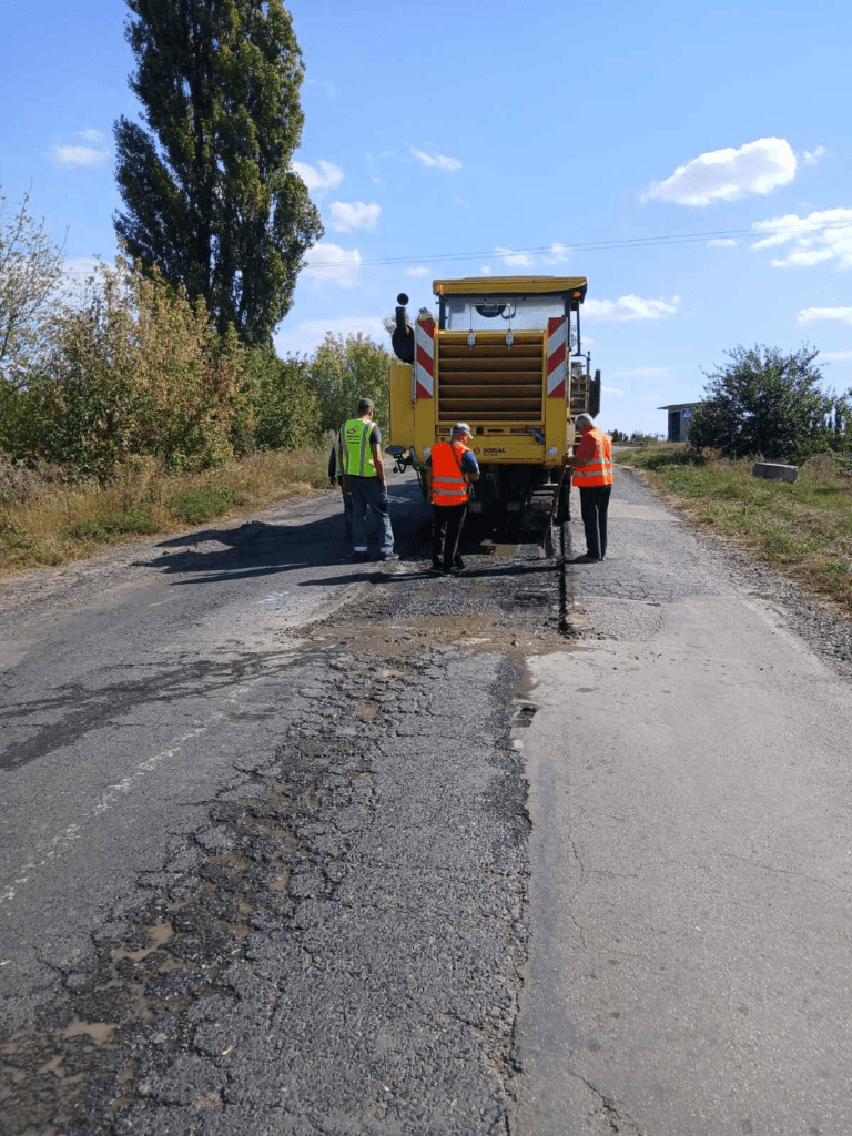 На ділянці зняли пошкоджені шари дорожнього покриття, укріпили основу цементом і вклали нижній шар крупнозернистого асфальтобетону. Будівельники працюють одразу на обох проїздах, щоб прискорити темпи.