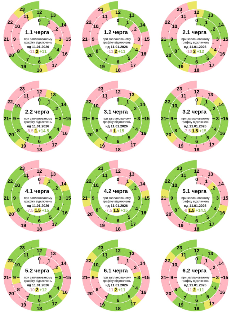 Паралельно з 0:00 до 23:59 11 січня діятимуть графіки обмеження споживання електричної потужності для бізнесу в обсязі пʼяти черг.