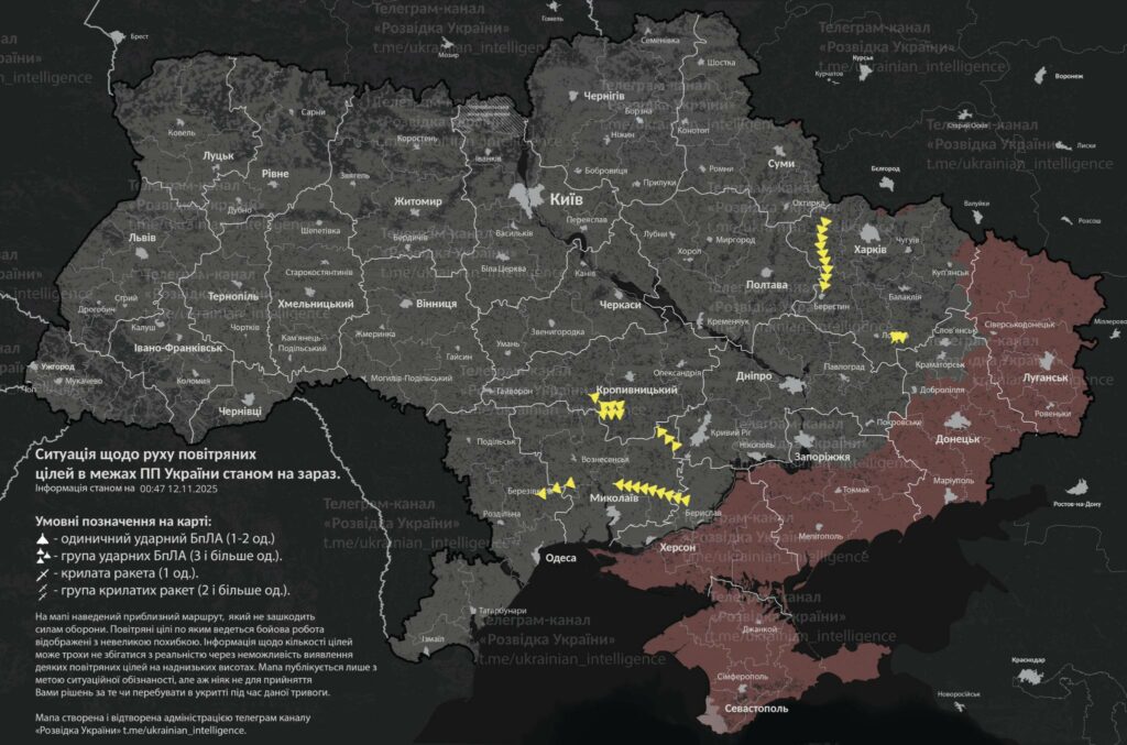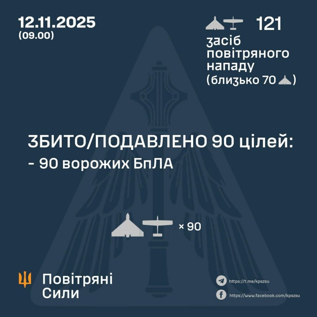 Повітряні Сили ЗСУ 12 листопада повідомили про результати бойової роботи. У ніч на 12 листопада росіяни атакували Україну з різних напрямків.