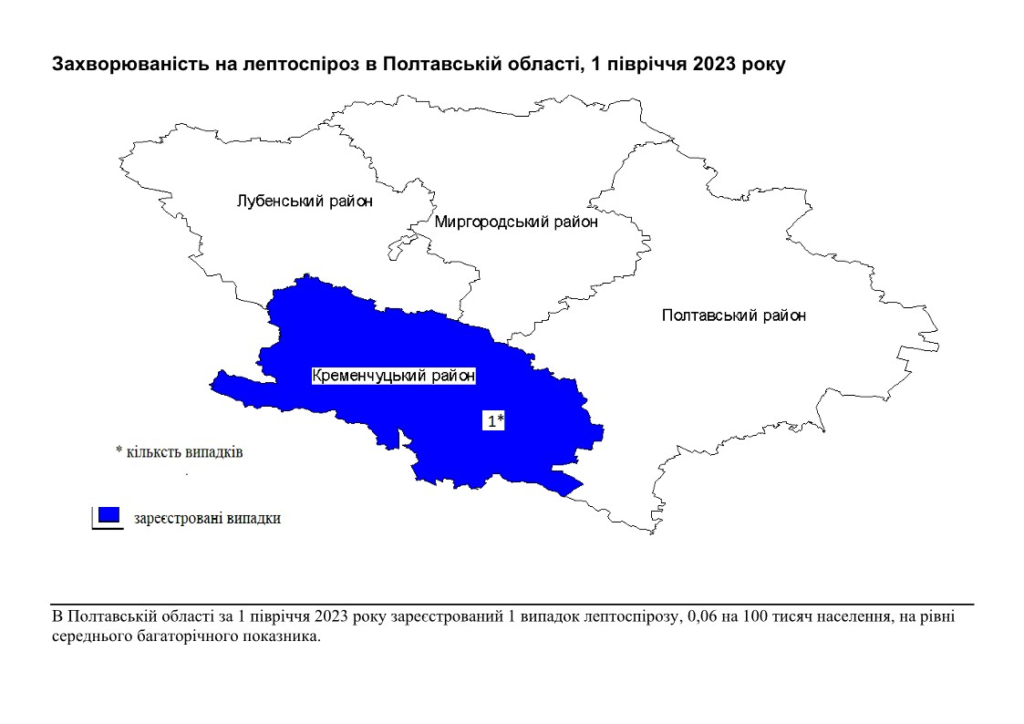 Захворюваність на лептоспіроз в області становить 0,06 на 100 тисяч населення, що на рівні середнього багаторічного показника.