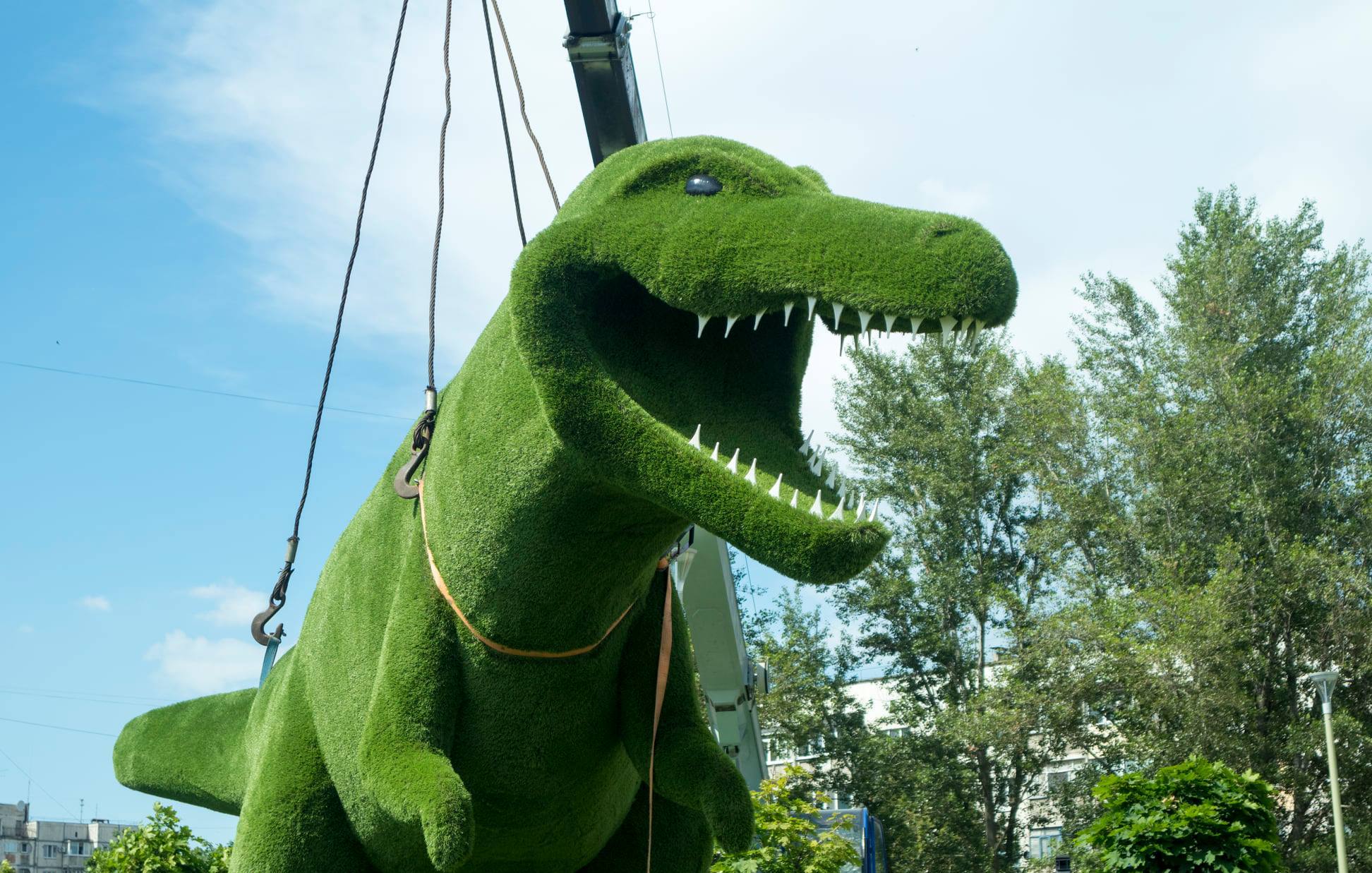У містечку Горішні Плавні, у сквері Ferrexpro встановили дві нові скульптури хижих динозаврів – тиранозавр і птеранодонт.