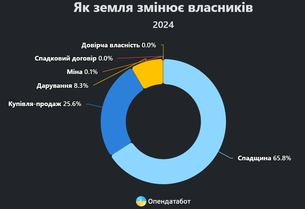 Нині тільки чверть земель змінюють власника через купівлю-продаж. 65% змін власників стосуються земель, які отримують у спадок.