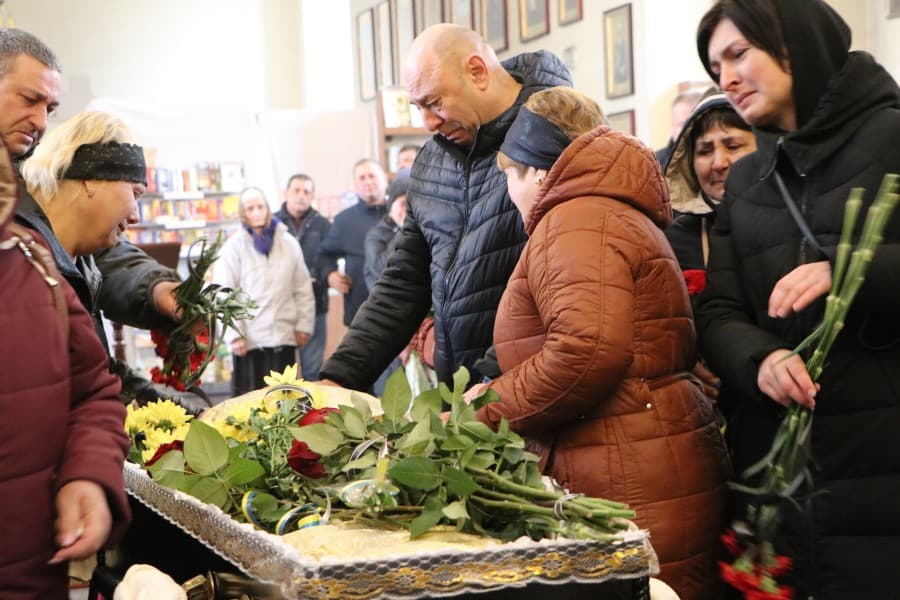 Церемонія прощання із військовослужбовцем відбулася у головному соборі Полтави 22 березня. Сергій Безручко віддав життя в бою 14 березня.
