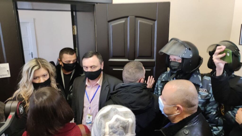 Громаду в кабінет не пустили, але двоє депутатів зайшли. Повідомляють, що в кабінеті триває нарада зі старостами громади.
