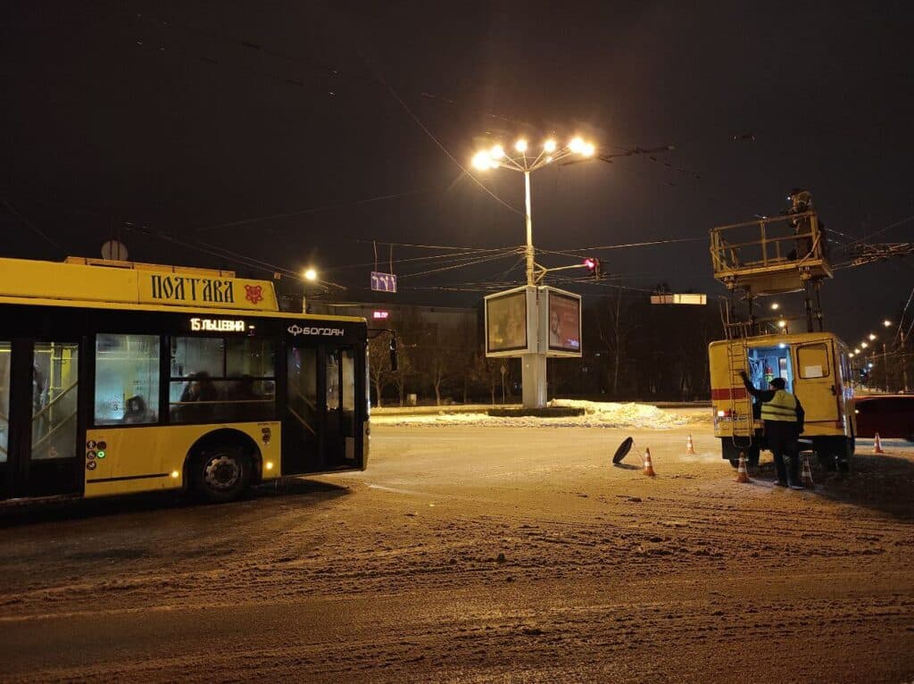 15 січня у центрі Полтави обірвалася тролейбусна лінія. Тоді лінія обірвалася через припарковані автомобілі у не пристосованому місці. Тролейбус вийшов на максимальне відхилення від контактної мережі, натягнув її і мережа не витримала.
