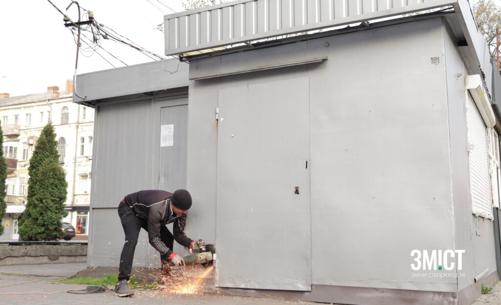 Першими на вул. Європейській, 27 зносять МАФи, що пустують. Заступник начальника Інспекції по контролю за благоустроєм Віктор Булат каже, що усіх підприємців сповістили про демонтаж завчасно: