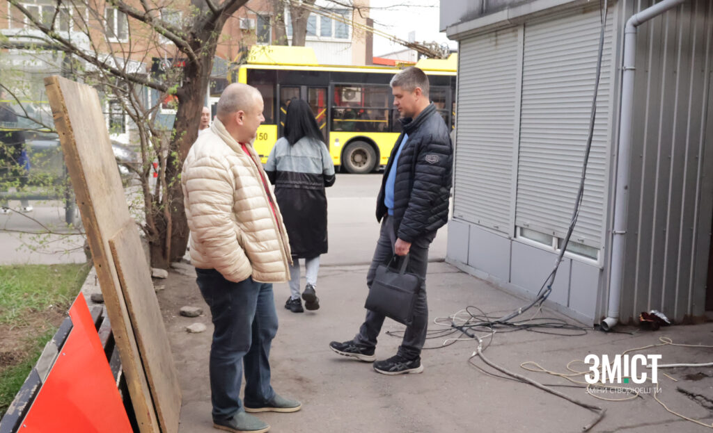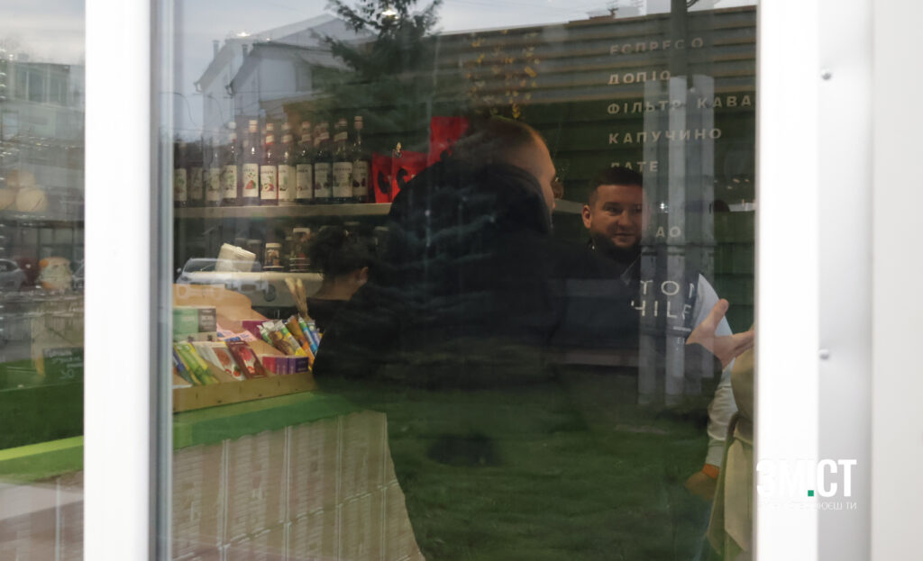 На місці демонтажу також працював начальник Інспекції по благоустрою Максим Малько. Разом з власником він зайшов до МАФу, який хочуть зносити, купив собі кави з депутаткою Оксаною Дрюк та власником закладу Артемом Опошняном. Запитуємо про враження міської влади від кави: