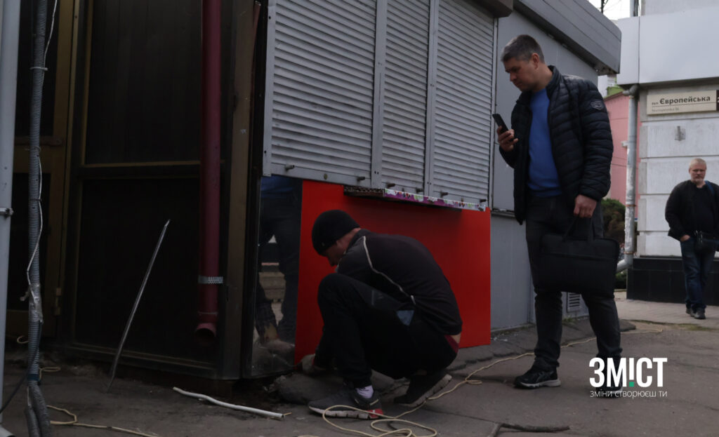 Начальник інспекції пʼє каву, підрядники розбирають МАФи. Як у центрі Полтави зносять кіоски (ФОТО)