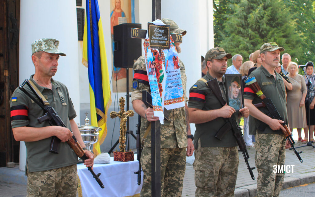 Біля Свято-Успенського собору полтавці віддали останню земну шану полеглому на Донеччині морському піхотинцю Русланові Ковтуну.