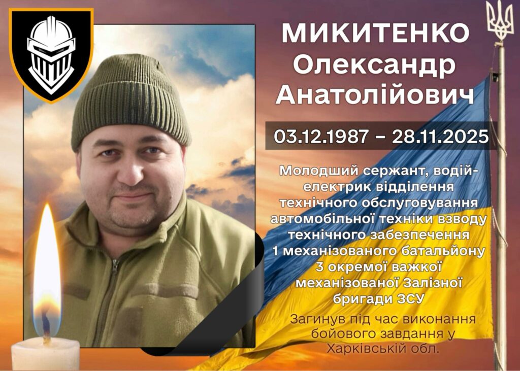 Як повідомили 1 грудня у Хорольській громаді, Олександр Микитенко поліг під час виконання бойового завдання.