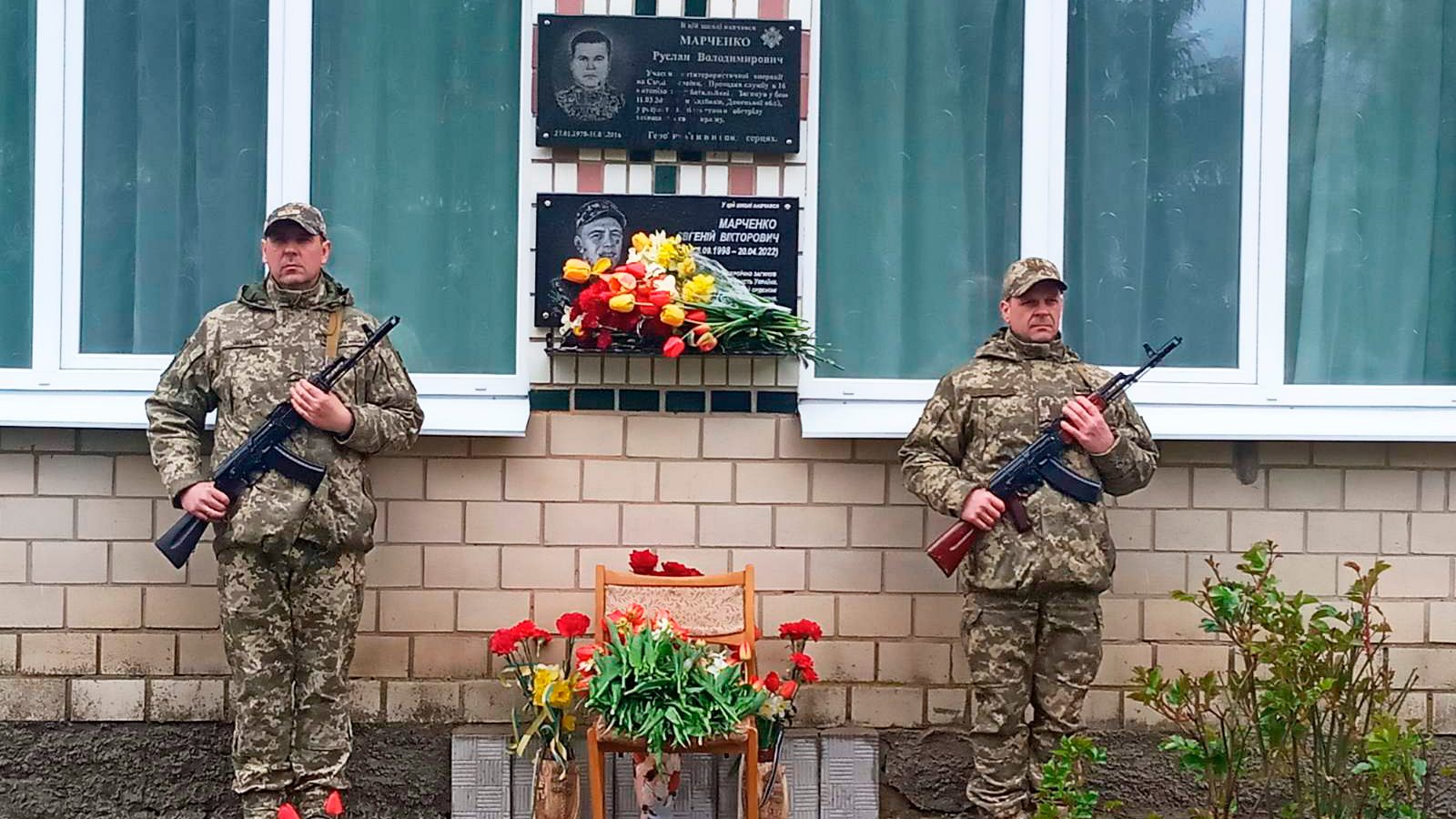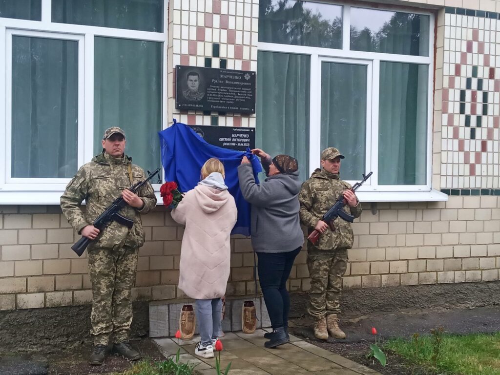 Дошку захиснику Євгенію Марченку відкрили на фасаді Михнівської школи, де він навчався.