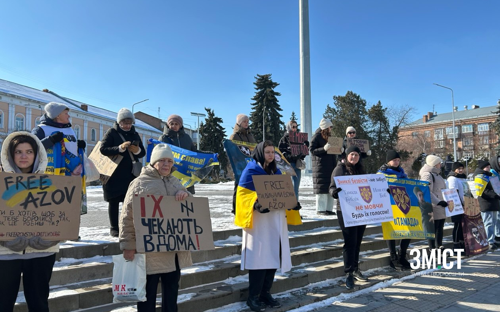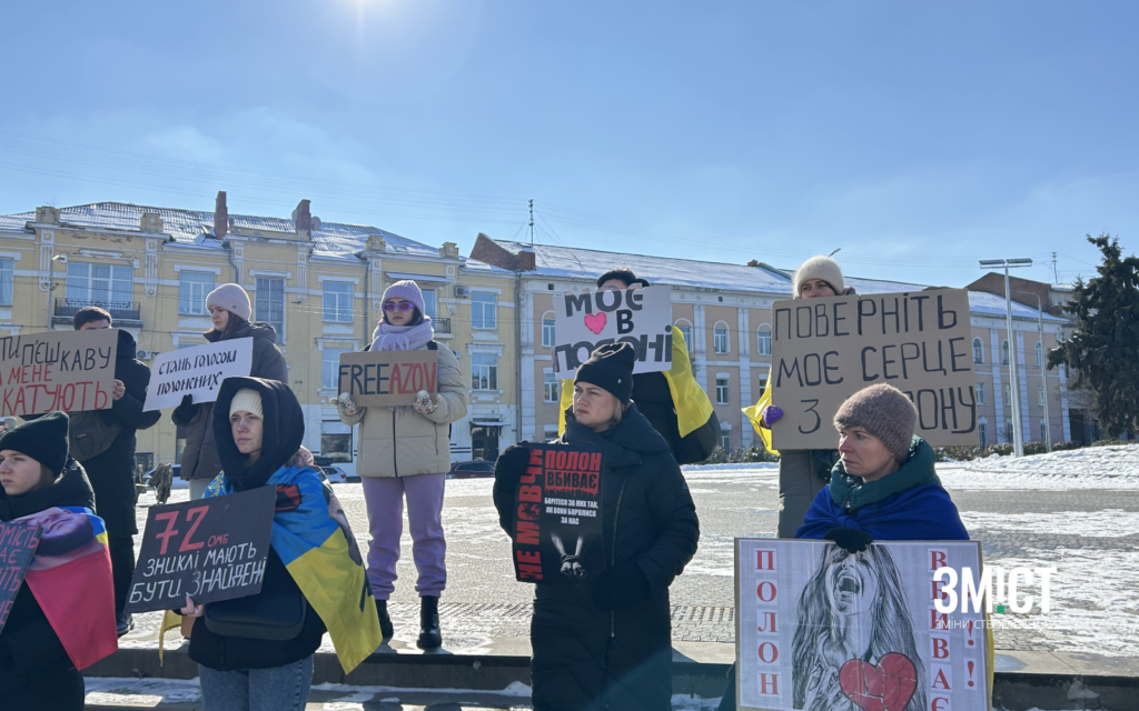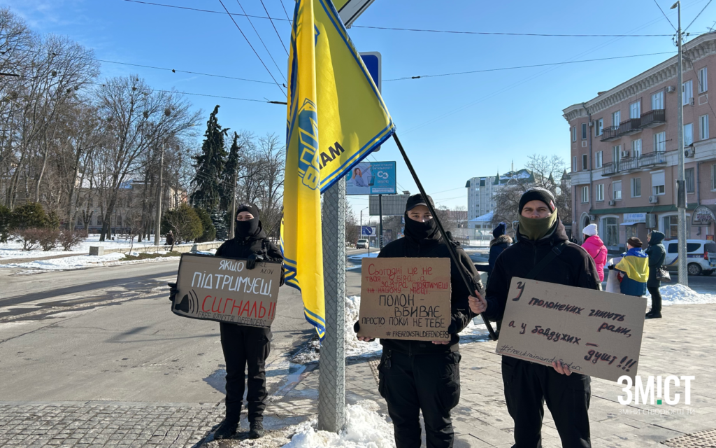 22 лютого рідні воїнів стояли поблизу прапора на вул. Небесної Сотні. Центральними вулицями їздили автівки з прапорами та закликами пам’ятати про полон.