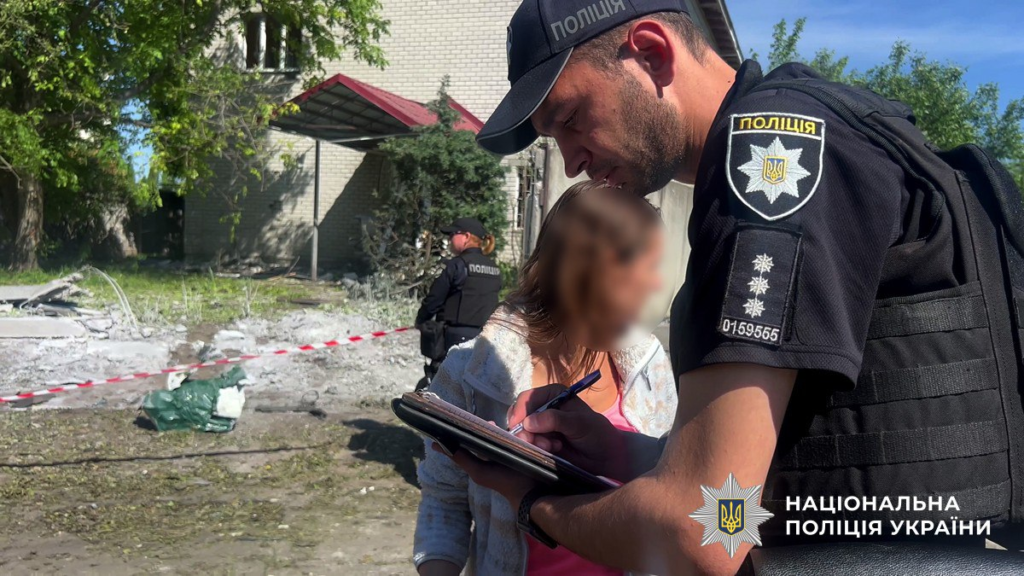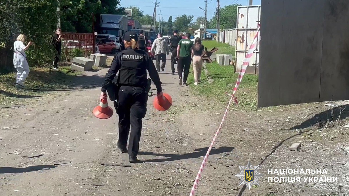 Унаслідок ворожої атаки пошкоджена будівля підприємства та цивільні будинки. Щоб надалі притягнути злочинців до відповідальності, правоохоронці документують наслідки удару.