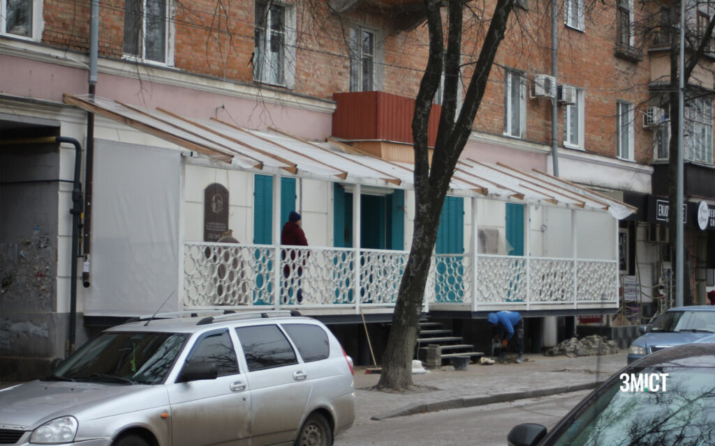 Нова прибудова в історичному центрі Полтави: рибний ресторан будує цар-балкон навпроти театру