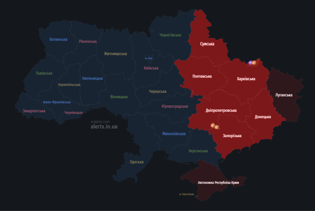 Нові загрози для Полтавщини: мапа тривог 11 лютого