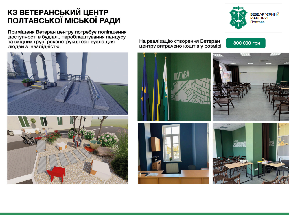 Також, у приміщені ветеранського центру планують переоблаштування пандуса та реконструкцію сан вузлів для людей з інвалідністю. На це вже виділили 800 тис. грн.