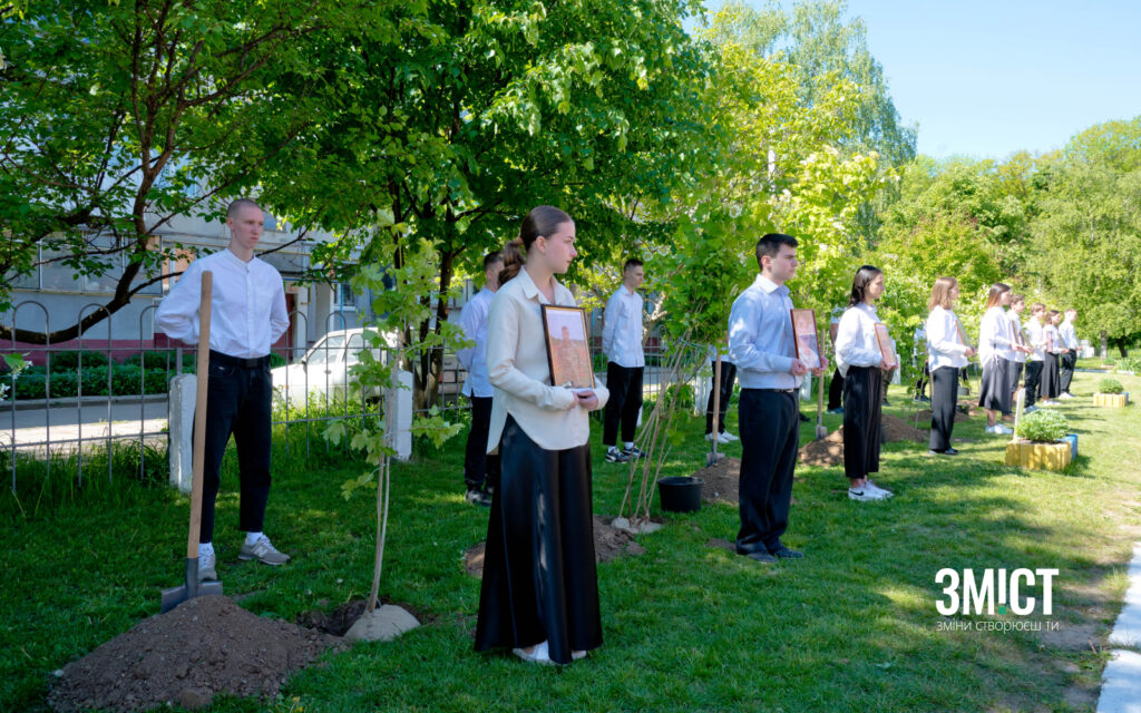 10 травня, на території ліцею №32 у Полтаві висадили 11 саджанців калини. Кожне дерево присвятили випускникам та батькам учнів ліцею, які протягом дев’яти років захищали Україну. ЗМІСТ підготував фоторепортаж з відкриття Алеї.