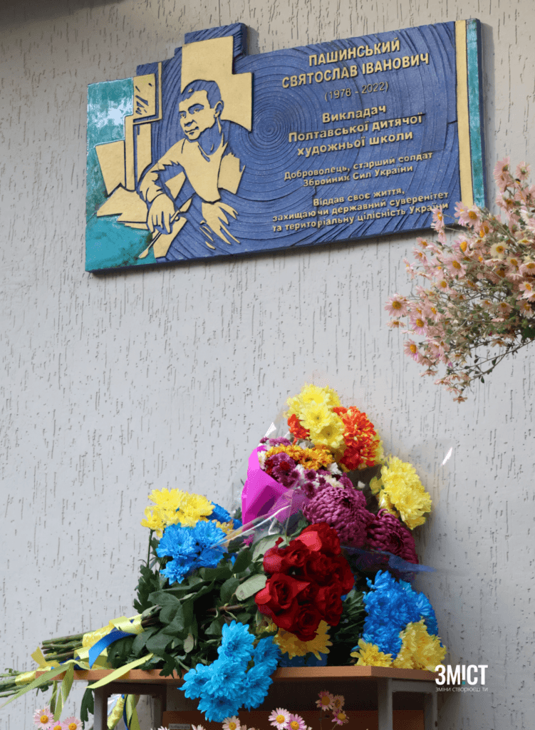 Святослав Пашинський поліг у бою на Запоріжжі навесні торік. Меморіальну дошку захисникові встановили на фасаді художньої школи, яка віднедавна носить його ім’я.