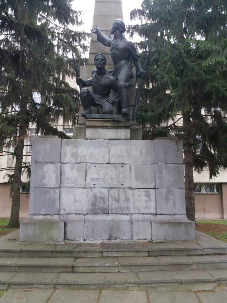 Днями невідомі створили на пам’ятнику напис «Зима прийшла, комуна в дупу пішла». У червні монумент вирішили знести, а рештки поховань – перенести на кладовище. Проте станом на зараз він залишається на міській площі.
