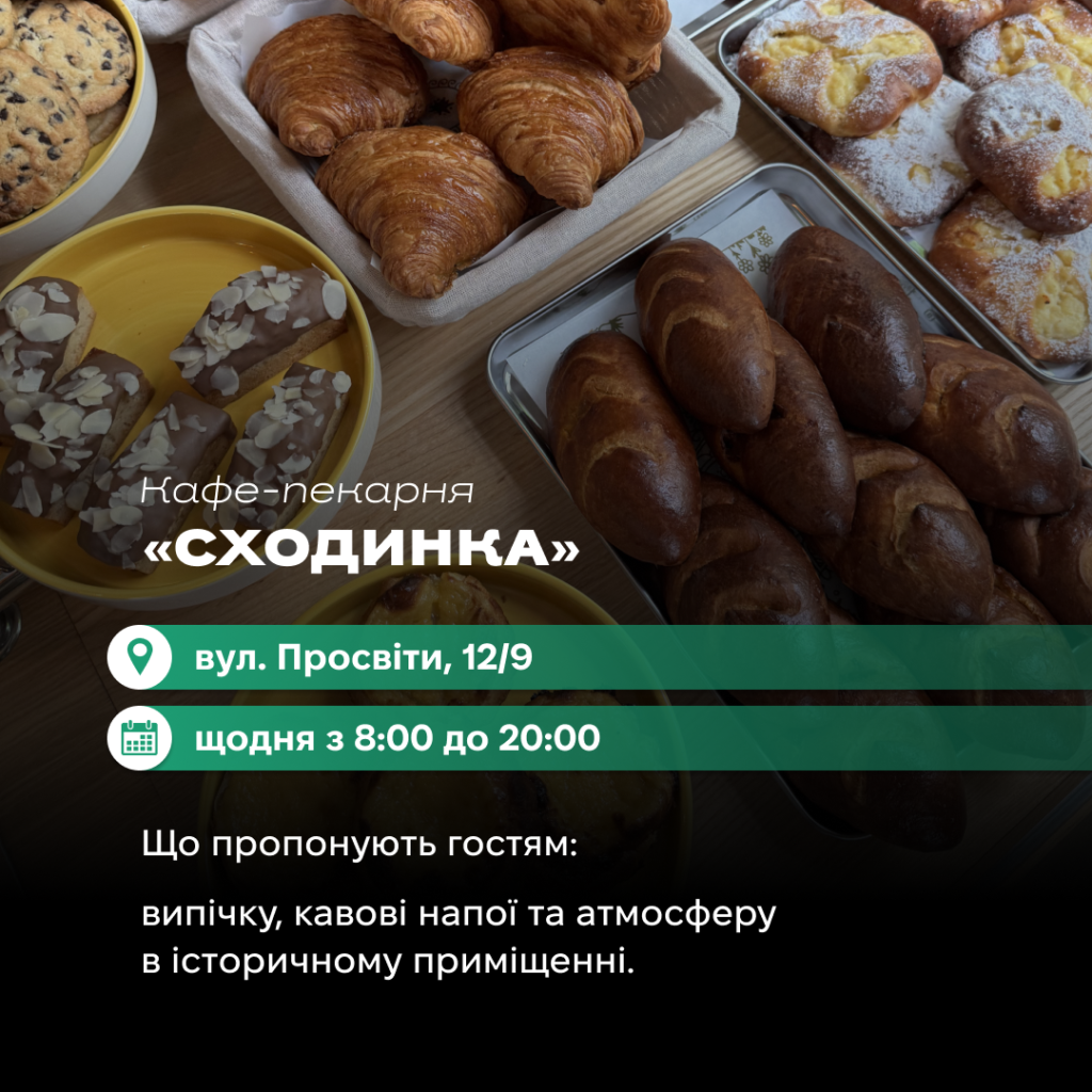 У історичному приміщенні на вул. Просвіти закінчили ремонт у кафе-пекарні «Сходинка». Команда розмістилася в будівлі, де діяв Учительський інститут, який згодом перейменували на Педагогічний.