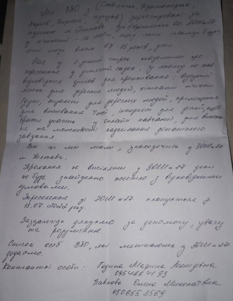 Переселенців із полтавської школи хочуть «примусово-добровільно» відправити жити у дитячий садок