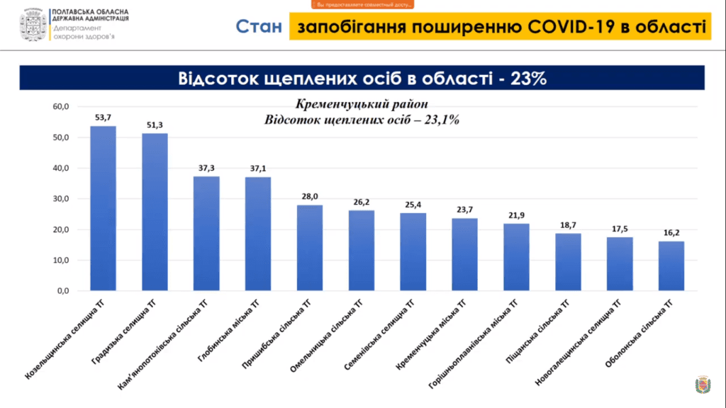 «У двох громадах – це Козельщинська і Градизька – ми маємо понад 50% вакцинованих. Це одні із перших громад у нас в державі, які зробили такий показник».