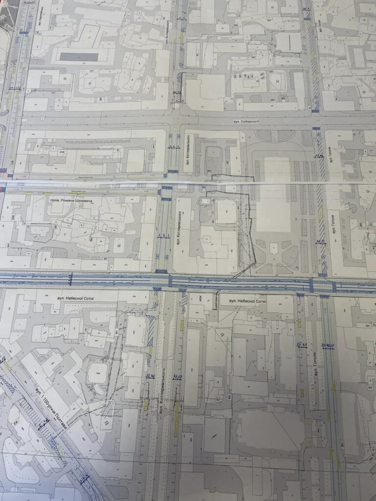 Очільник Інспекції з благоустрою Максим Малько показав проєктні креслення з потенційним розміщенням парковок на вулицях Європейській, Гоголя та Котляревського.