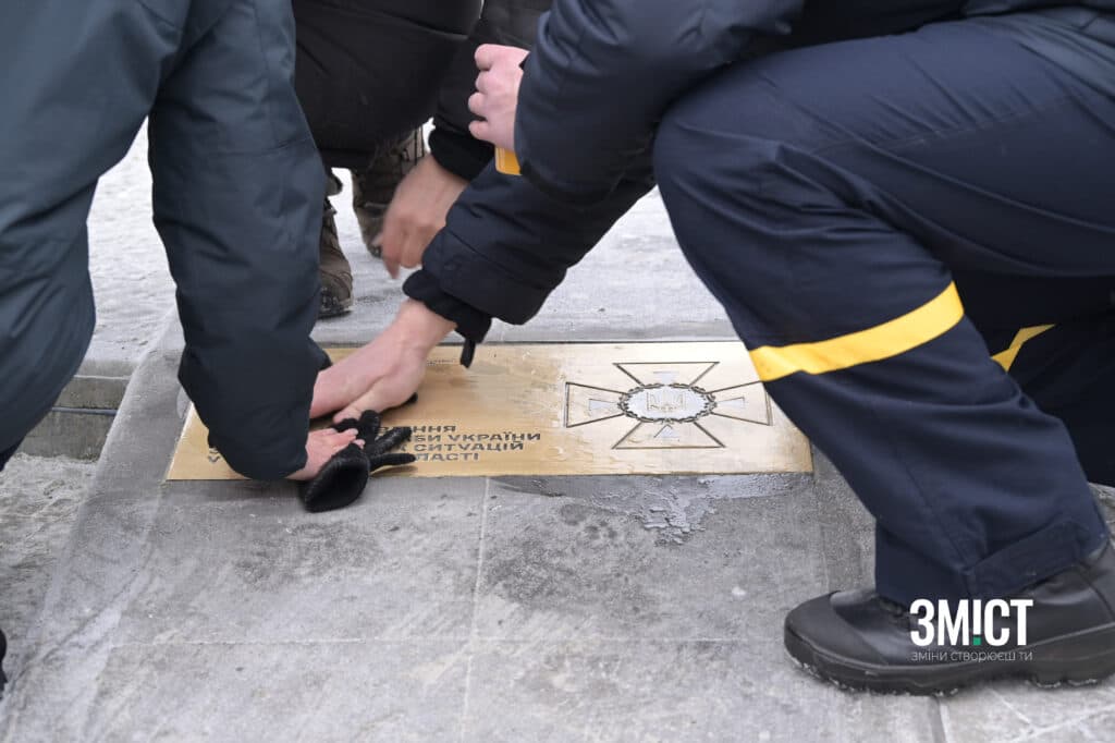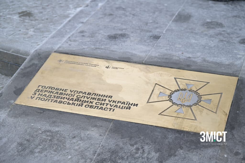 На колі променів довкола державного прапора, встановили пам’ятний знак на честь Головного управління ДСНС України у Полтавській області. Метою встановлення таблички стало вшанування формувань, які обороняють Україну, а також збереження пам’яті про їхній внесок.