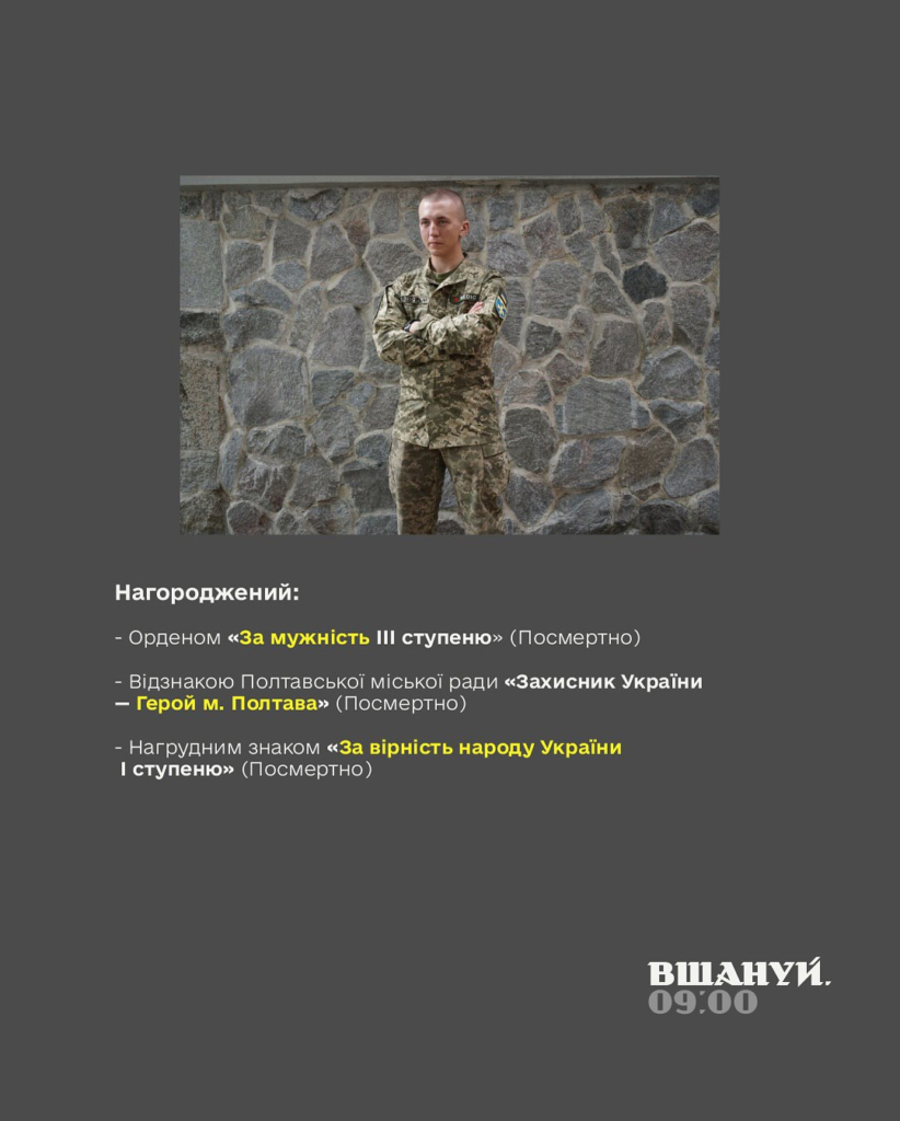 У Полтаві організовують акції пам’яті, щоб нагадати про полеглих захисників. Загальнонаціональна хвилина мовчання починається щодня о 9:00.