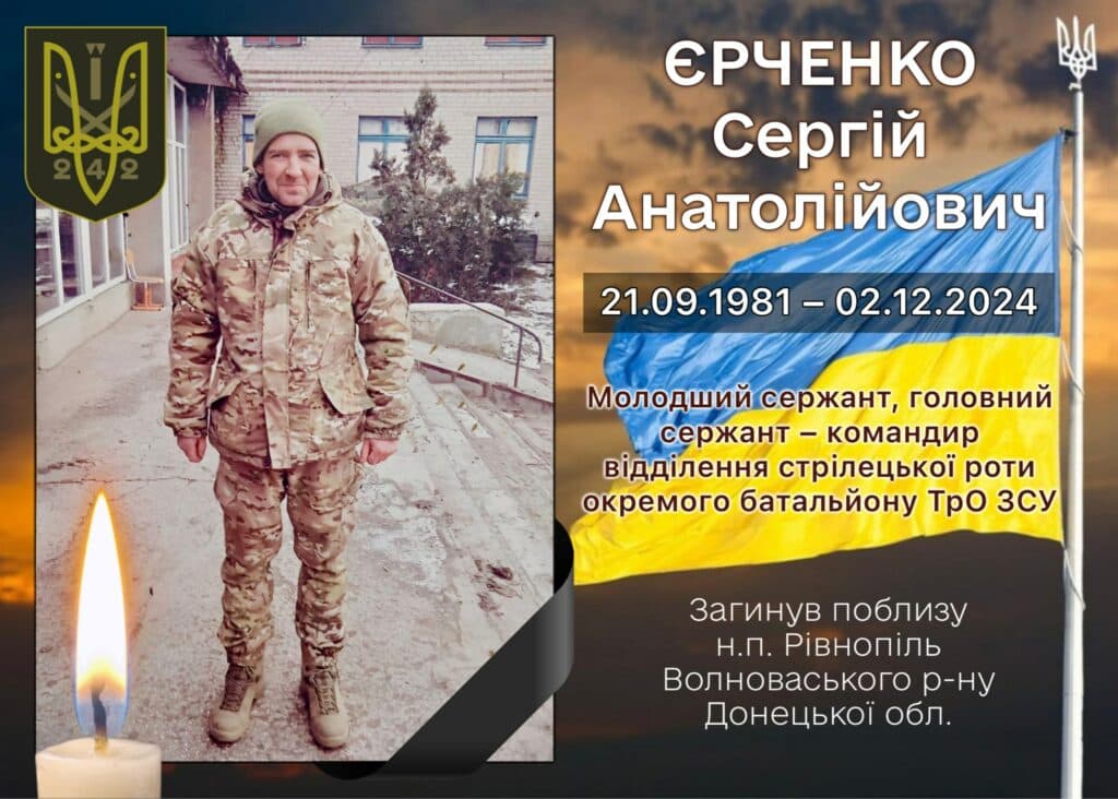 Сергій Єрченко загинув 2 грудня зі зброєю в руках. Хорольська громада 5 грудня повідомила, що воїн повертається на щиті.