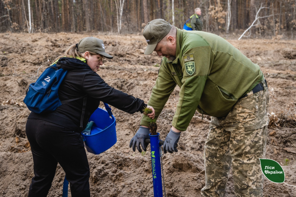У Чалівському лісництві, неподалік Полтави на площі понад один гектар лісівники, рідні та громада висадили молоді сосни, берези та калину.