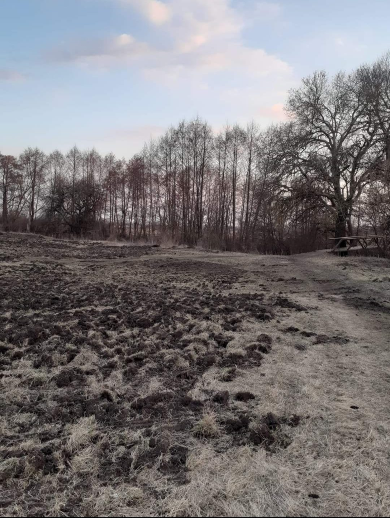 Фото пасовищ поблизу Нових Санжар оприлюднив місцевий житель Анатолій Бунецький 10 березня. На фото видно порушений верхній шар пасовища.