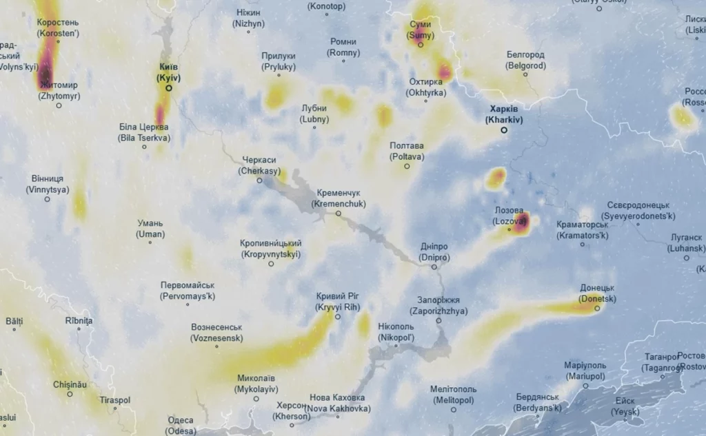 Забруднення повітря фіксують у Полтаві та Кременчуці.