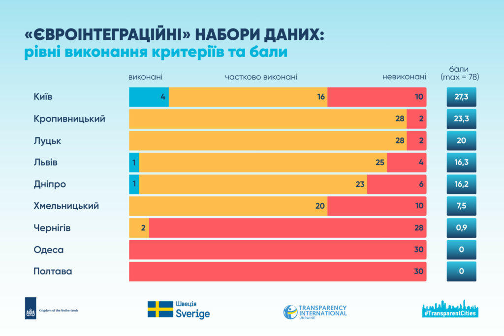 Муніципалітет не забезпечив зручне оприлюднення євроінтеграційних наборів за принципом «єдиного вікна», як того вимагають сучасні стандарти.