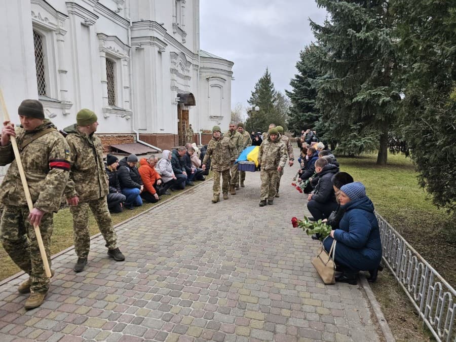 Рідні, знайомі та побратими прощалися із захисником у Свято-Успенському соборі Полтави. Сергій Кирячок загинув 27 лютого.