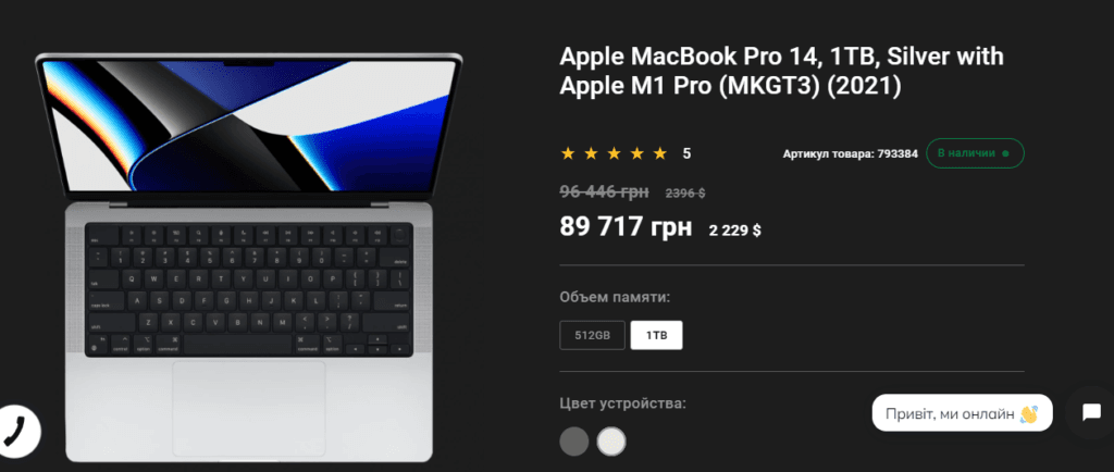 - ноутбук Apple Macbook Pro 14" M1 Pro 1TB Silver (MKGT3) в комплекті з мишкою ( або еквівалент). Очікувана вартість – 132 тис. грн;