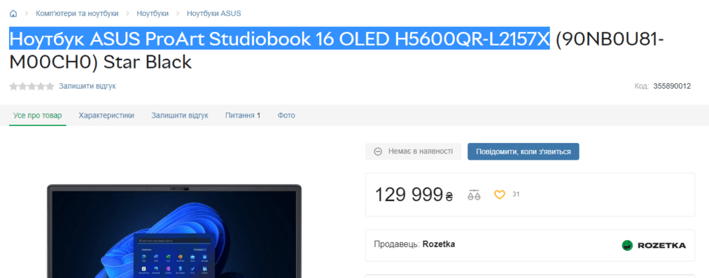 Ноутбук ASUS ProArt Studiobook 16 OLED можна купити приблизно за 129 тис. грн без мишки (її можна придбати окремо). Хоча «Полтаватеплоенерго» орієнтується на вартість у майже 150 тис. грн.