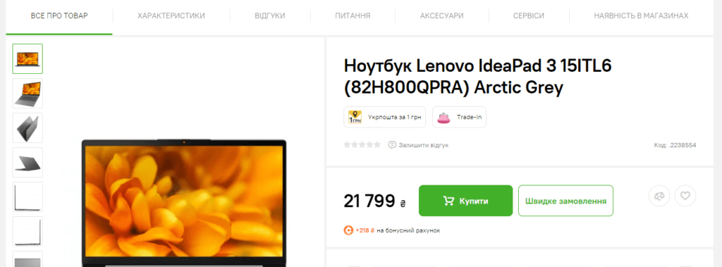 Lenovo IdeaPad 3 15ITL можна придбати дешевше, аніж оцінює «Полтаватеплоенерго». Вартість коливається від 19 до 22 тис. грн замість очікуваної вартості у закупівлі.