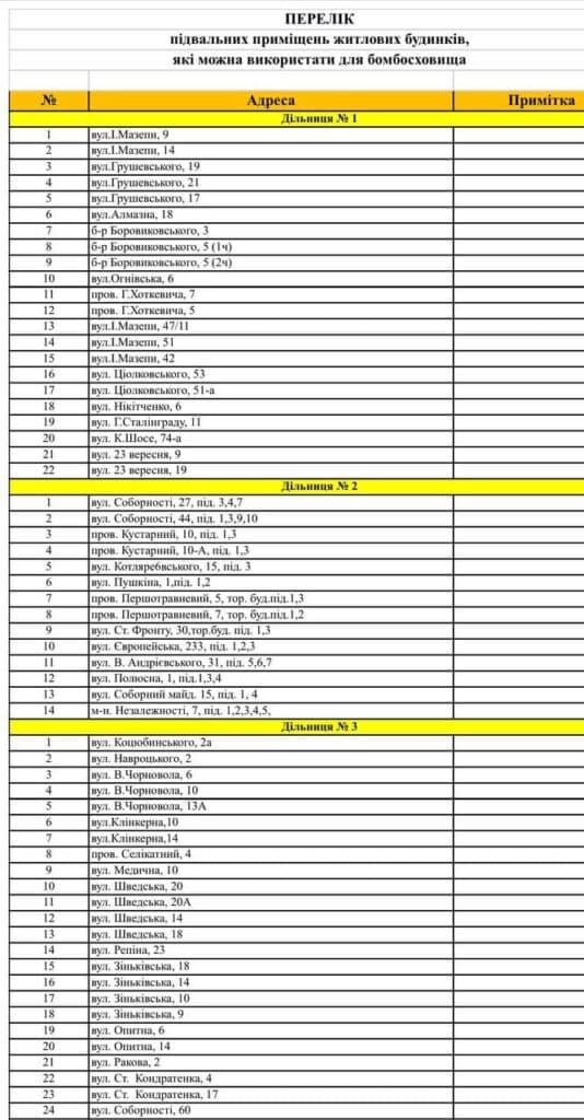 Придатні підвальні приміщення у закладах освіти Полтави можна знайти за посиланням. Усі приміщення будуть відкриті на випадок «повітряної тривоги».