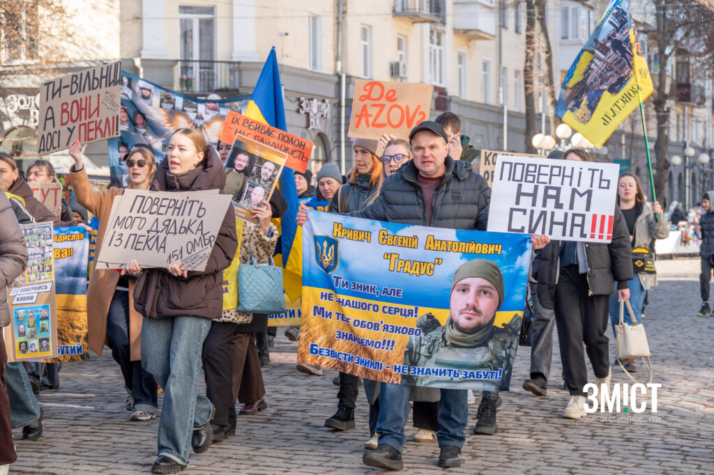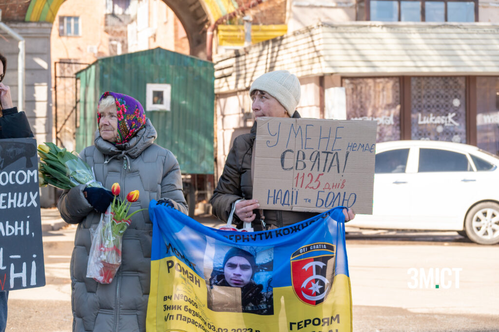 8 березня містяни вийшли на вулиці міста з гаслами, щоб нагадати про захисників у російській неволі та зниклих безвісти.