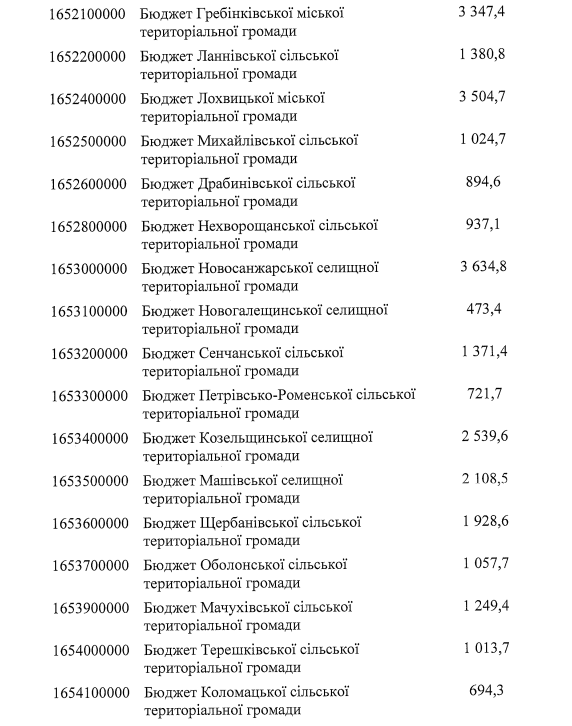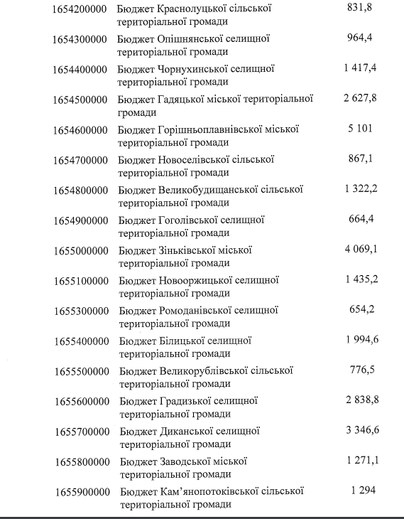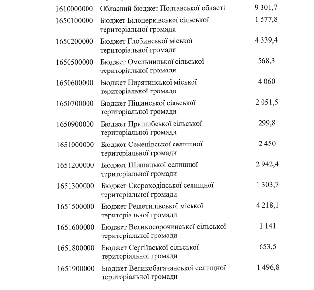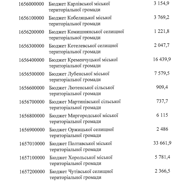 Скільки отримає бюджет Полтавщини та громад (тис. грн)?