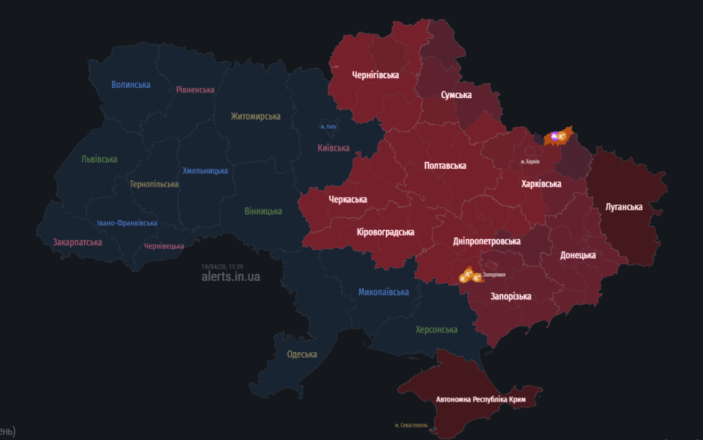 За повідомленнями Повітряних Сил, відстежуємо які існують загрози для області 14 квітня.