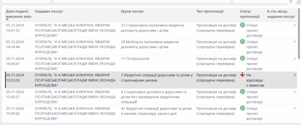 За даними НСЗУ, 4 міська лікарня не відповідає вимогам на укладення договору за пакетом хірургічна допомога дорослим і дітям у стаціонарних умовах.
