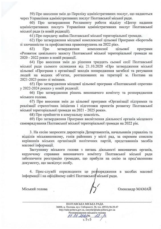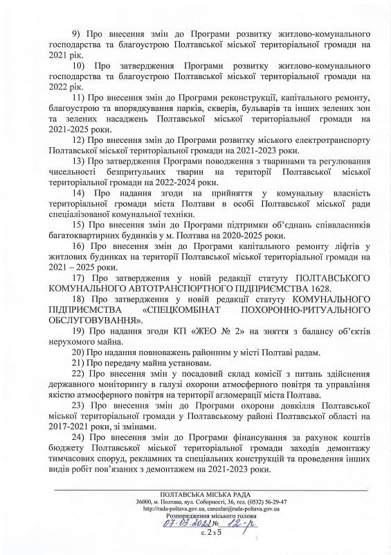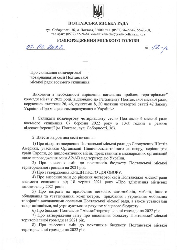 Сесія Полтавської міської ради запланована на 13:00 7 березня.