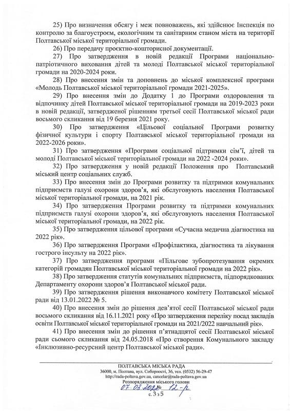 На погоджувальній раді 6 березня керівники фракцій вирішили, що заплановані капітальні ремонти у місті та нові проєкти скасовують. Усі кошти бюджету розвитку направлять до резервного фонду, що оперативно виділяти на українську армію та відновлення об’єктів після війни.