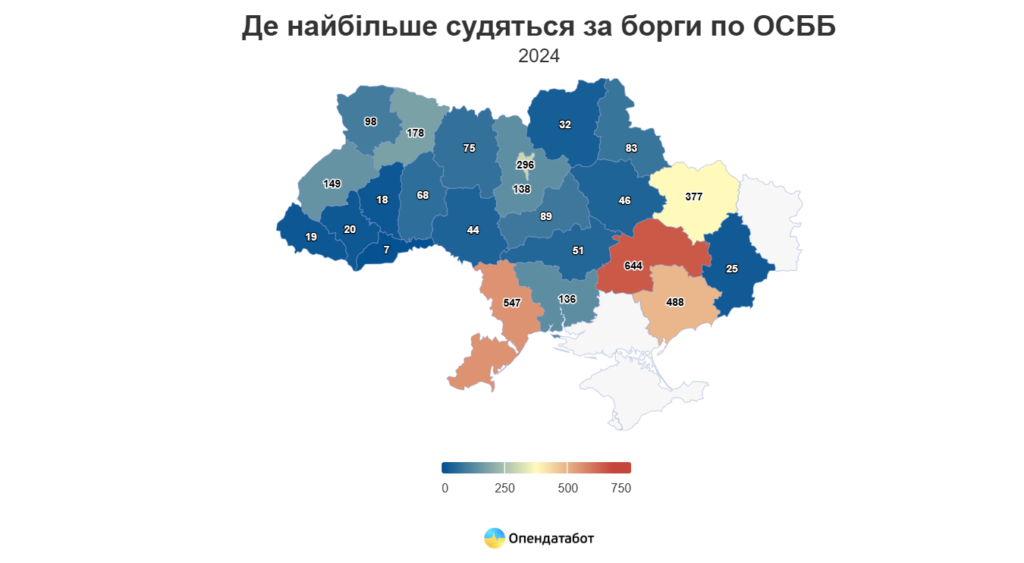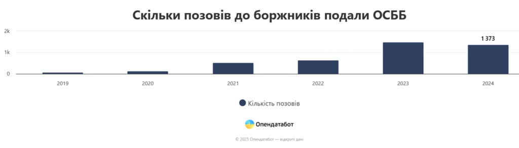 Про це відомо із дослідження «Опендатаботу» 14 лютого. Рекордним за кількістю позовів до співвласників став 2023 рік. Тоді ОСББ подали 1,4 тисячі позовів до співвласників. «Опендатабот» пов’язує це зі скасуванням заборони на штрафи через борги по житлово-комунальних послугах наприкінці 2023 року.