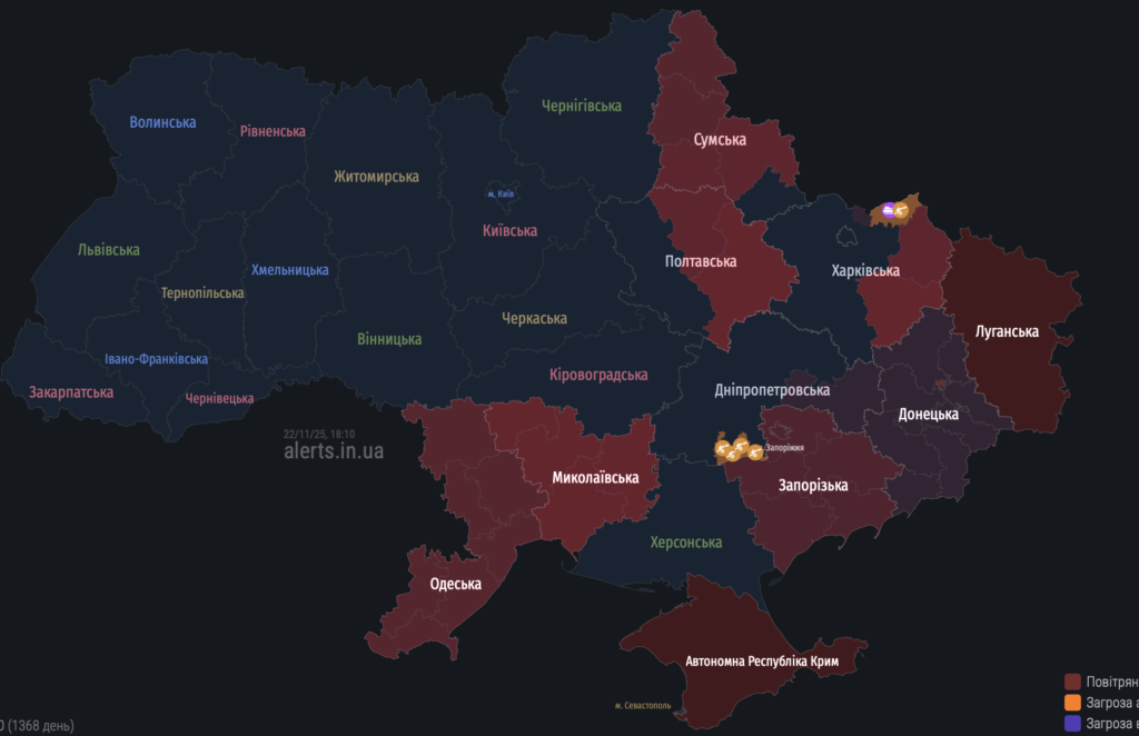 За повідомленнями Повітряних Сил та OSINT-спільнот, відстежуємо причини повітряних тривог в Полтаві та області.