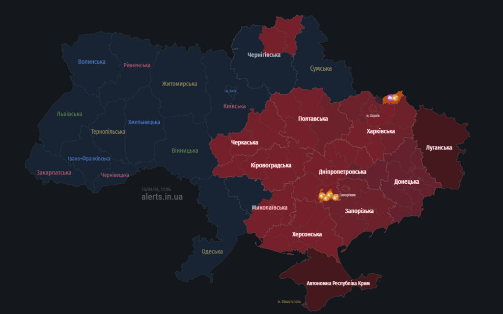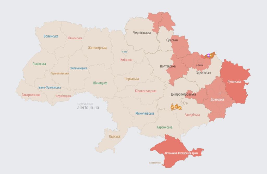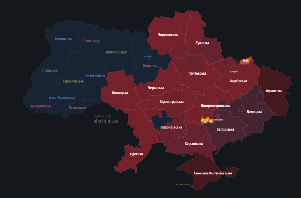 15:27 – повітряна тривога у Кременчуцькому та Полтавському районах. OSINTери повідомляють про загрозу балістики з Криму.